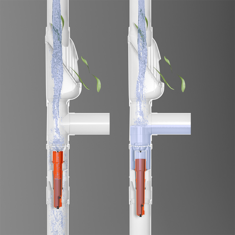 In a traditional first-flush diverter that utilises a storage chamber, the first flush of water is stored in the chamber. There is a ball inside the chamber that, as the water level rises, floats to the top of the chamber. When the first flush of water has filled the chamber, the ball seals it off, and high-quality water flows into your tank.